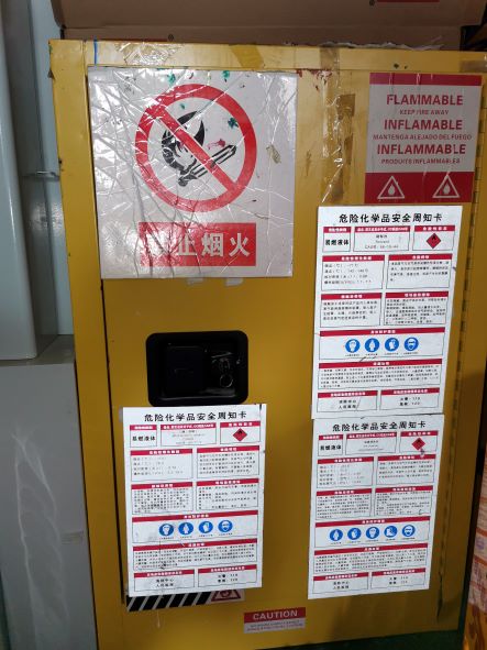 杭州超天科技有限公司成立于2012年8月21日,地址位于杭州余杭區良渚街道義馬漾路5號1幢501室,企業類型為有限責任公司(自然人投資或控股),法定代表人為陳志龍,注冊資金一百萬,主要從事電動車智能充電裝置的組裝加工,現有員工50人。該企業租用高通智能科創園1幢第5層1800m2作為生產場所,其中400m2為辦公場所。 根據企業提供的資料及現場踏勘情況,該企業生產過程中涉及絲印、浸焊、酒精擦拭等生產工藝,涉及使用油墨、油墨稀釋劑、慢干水、助焊劑、酒精等五種危險化學品,最大存放量分別為油墨(1kg/桶)6桶、油墨稀釋劑(1kg/桶)5桶、慢干水(2kg/桶)2桶、酒精(25kg/桶)5桶、助焊劑(25kg/桶)6桶。企業為提高安全風險管控水平,設置了絲網印刷車間、危化品中間倉庫、焊錫隔間,采取了防火分隔措施。 |